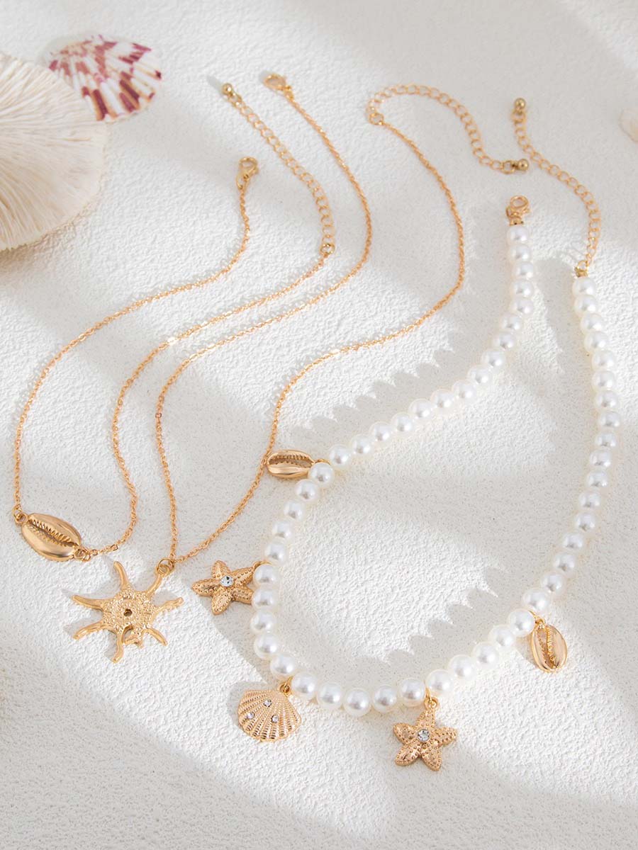 Bohemian Imitation Pearl Holiday Style Retro Starfish Shell Pendant Necklace Set