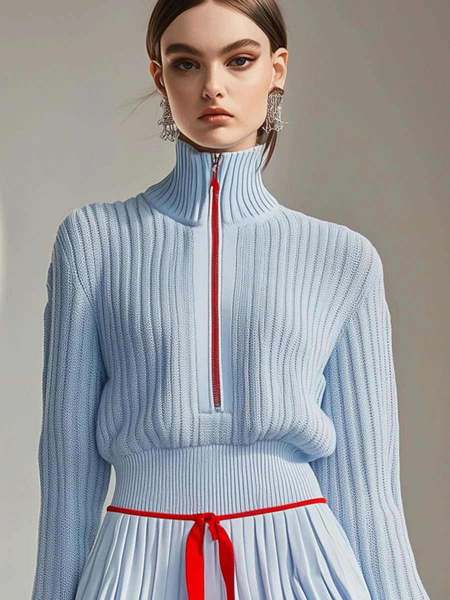Enjoy comfort and style with this casual fashion stand collar zipper knit sweater trousers culottes sports set. Whether you are going to the gym, having coffee with friends or relaxing at home, this set is the perfect combination of fashion and function.