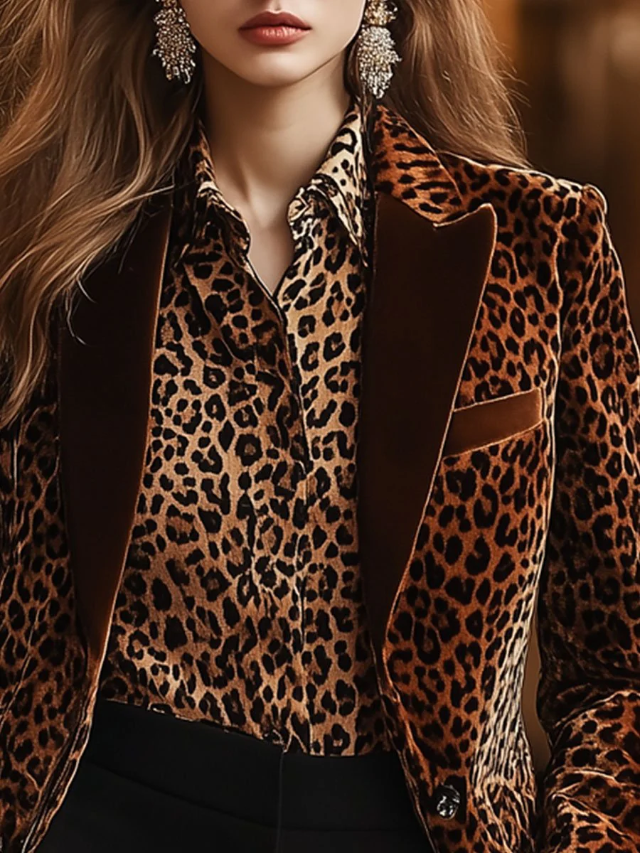 【24-hour shipping out】Casual Loose Retro Velvet Leopard Print Collar Blazer